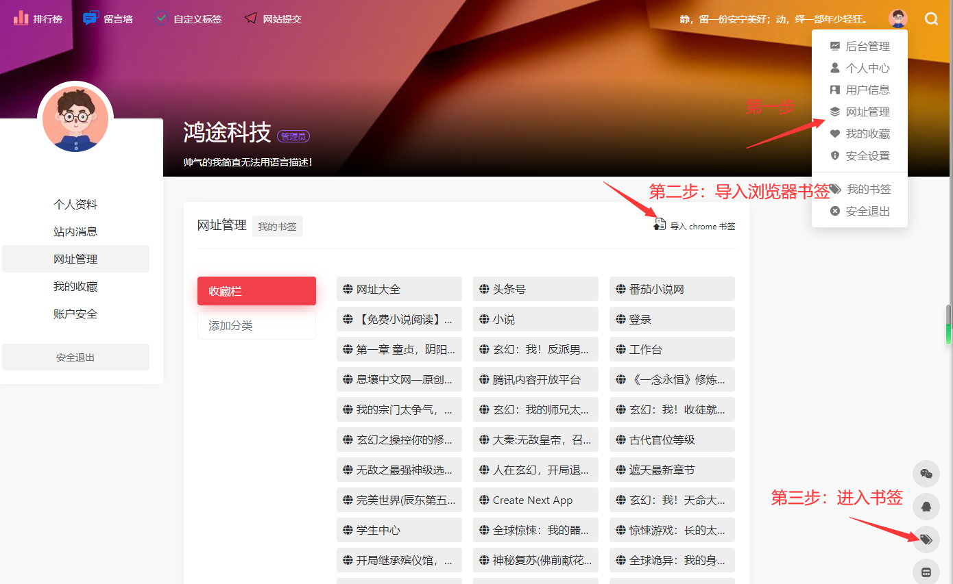 第三步:专属你的书签链接,没有任何广告,简洁方便好用。